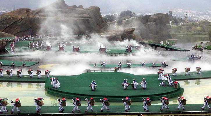 "希夷之大理"--望夫云由大理州旅游產(chǎn)業(yè)開發(fā)集團有限責任公司投資,國際著名導演陳凱歌先生擔任總導演,主創(chuàng)團隊由著名制作人王兵、日本音樂大師久石讓、中國著名舞美師柳青、北京現(xiàn)代舞團藝術(shù)總監(jiān)高艷津子、總政歌劇團服裝設(shè)計師陳同勛組成,打造的一臺具有亞洲一流水平的大型夢幻神話劇。劇場坐落在蒼洱之間的大理古城,總面積為220余畝,中心舞臺由不同的立面和緩沖坡面構(gòu)成,在栩栩如生的造型假山的映襯下,顯得氣勢磅礴;同時也是目前全亞洲科技含量最高的實景舞臺,運用了橫立牽引升降、立體視頻投影、復合混音等高科技手段;223米寬的彩虹橋橫跨整個劇場,將在33米的高空之上展示蔚為壯觀的霧森水幕成像系統(tǒng),為整場演出襯托無限的高潮!